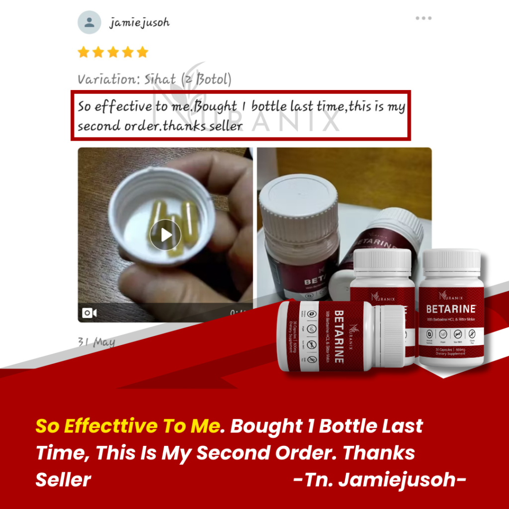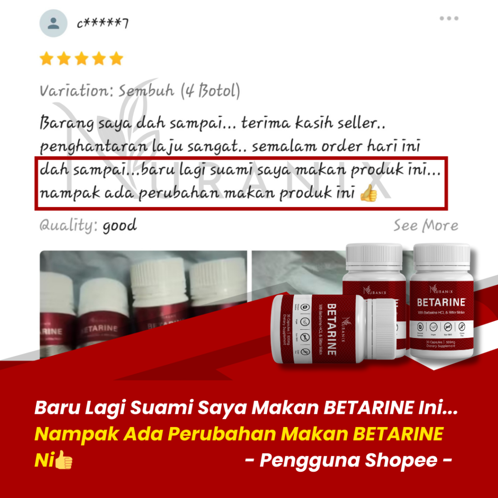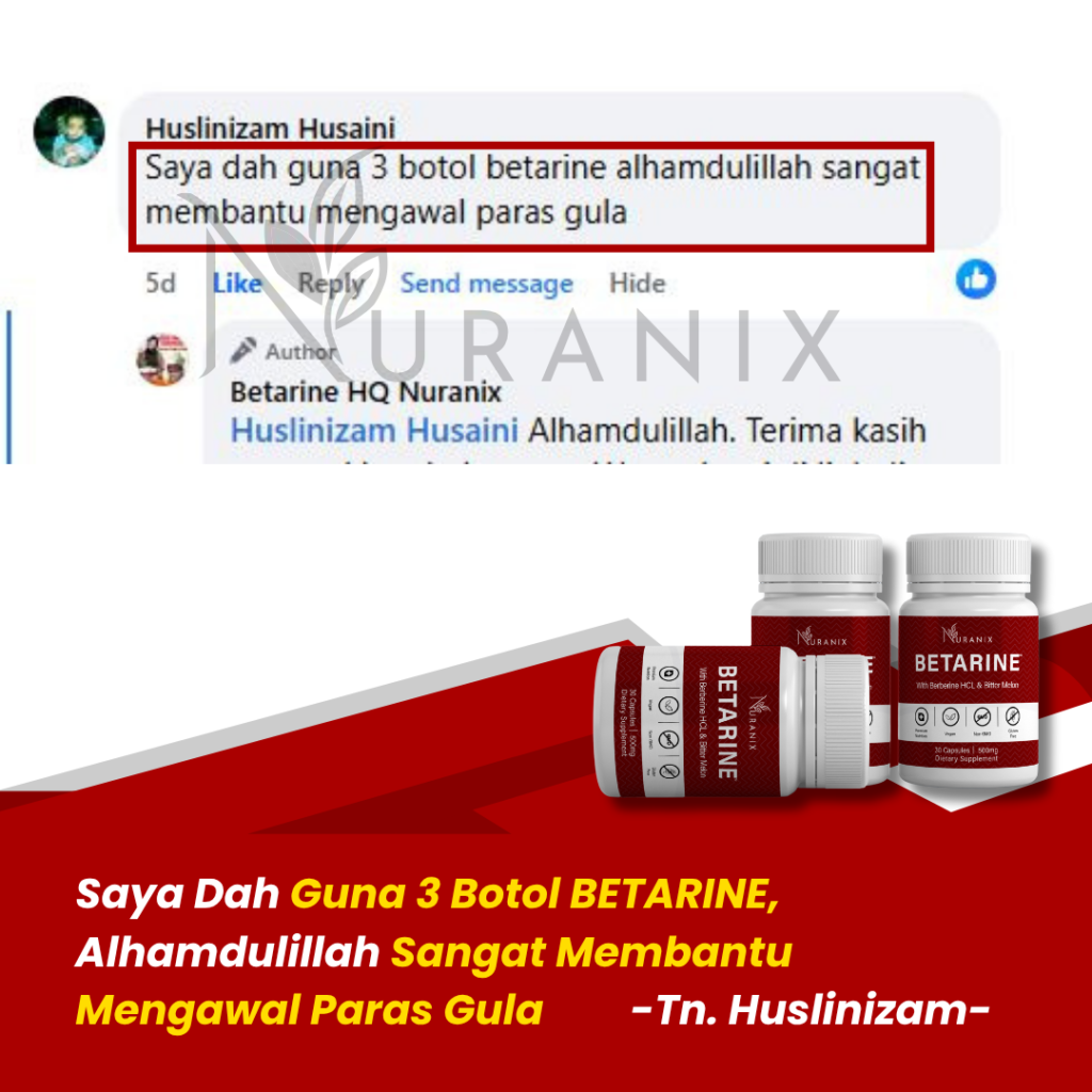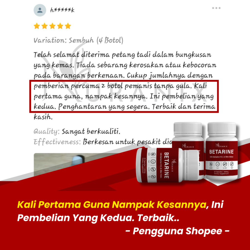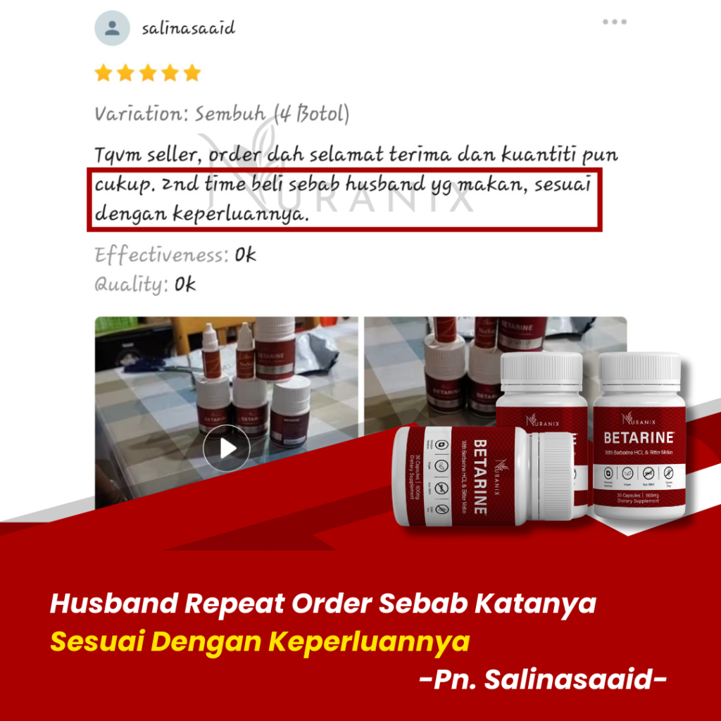 Anda dapat jaminan sekuat ini kerana kami ada bukti & pengalaman membantu ramai pesakit yang mempunyai masalah SAMA SEPERTI ANDA sebelum ini dan berjaya membuktikan BETARINE keluaran NURANIX ini memang TERBUKTI BERKESAN!